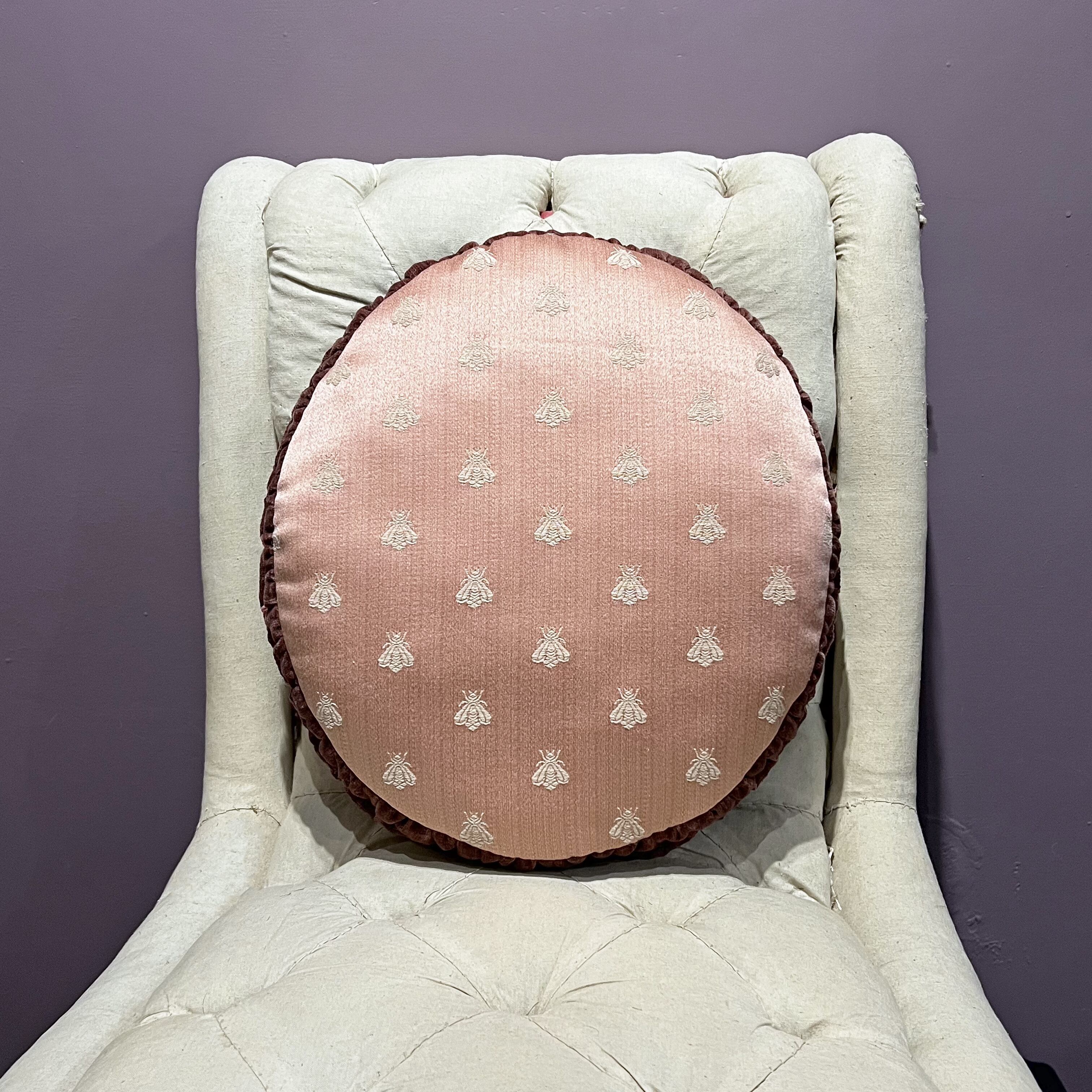 裏側にはピンク色の蜂柄ジャガード生地を使用しています。