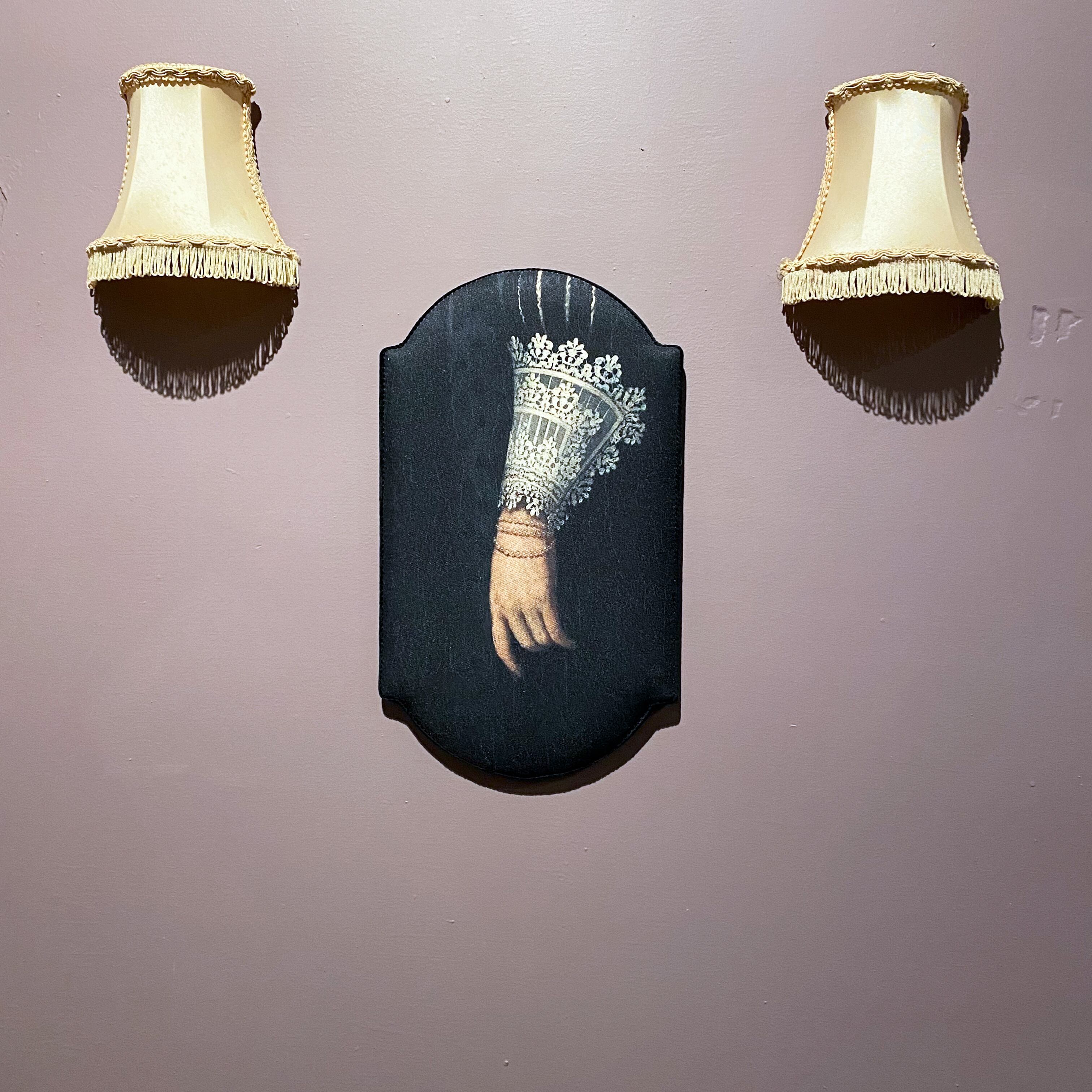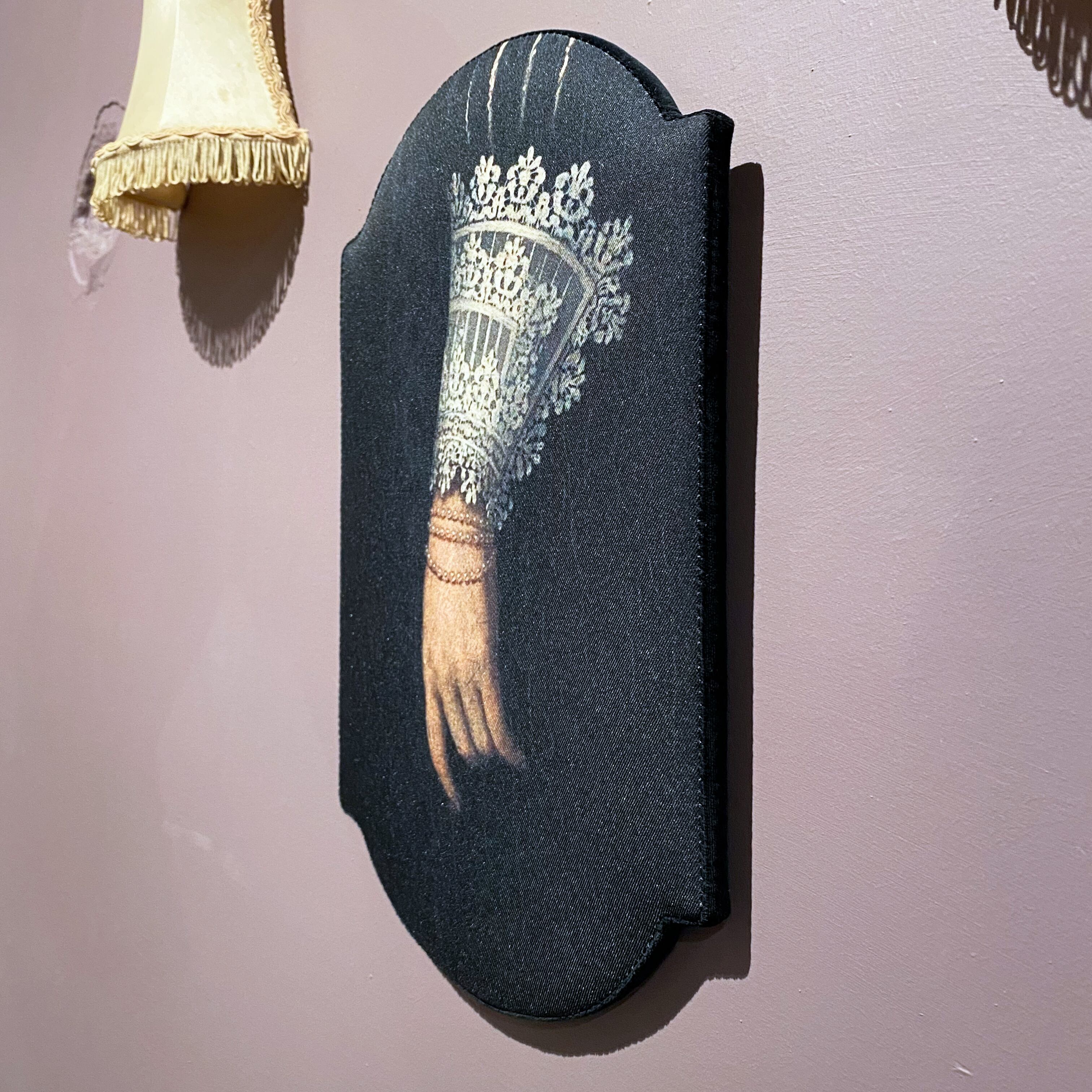 絵画の雰囲気を纏った、椅子の背もたれのような壁掛けオーナメント。