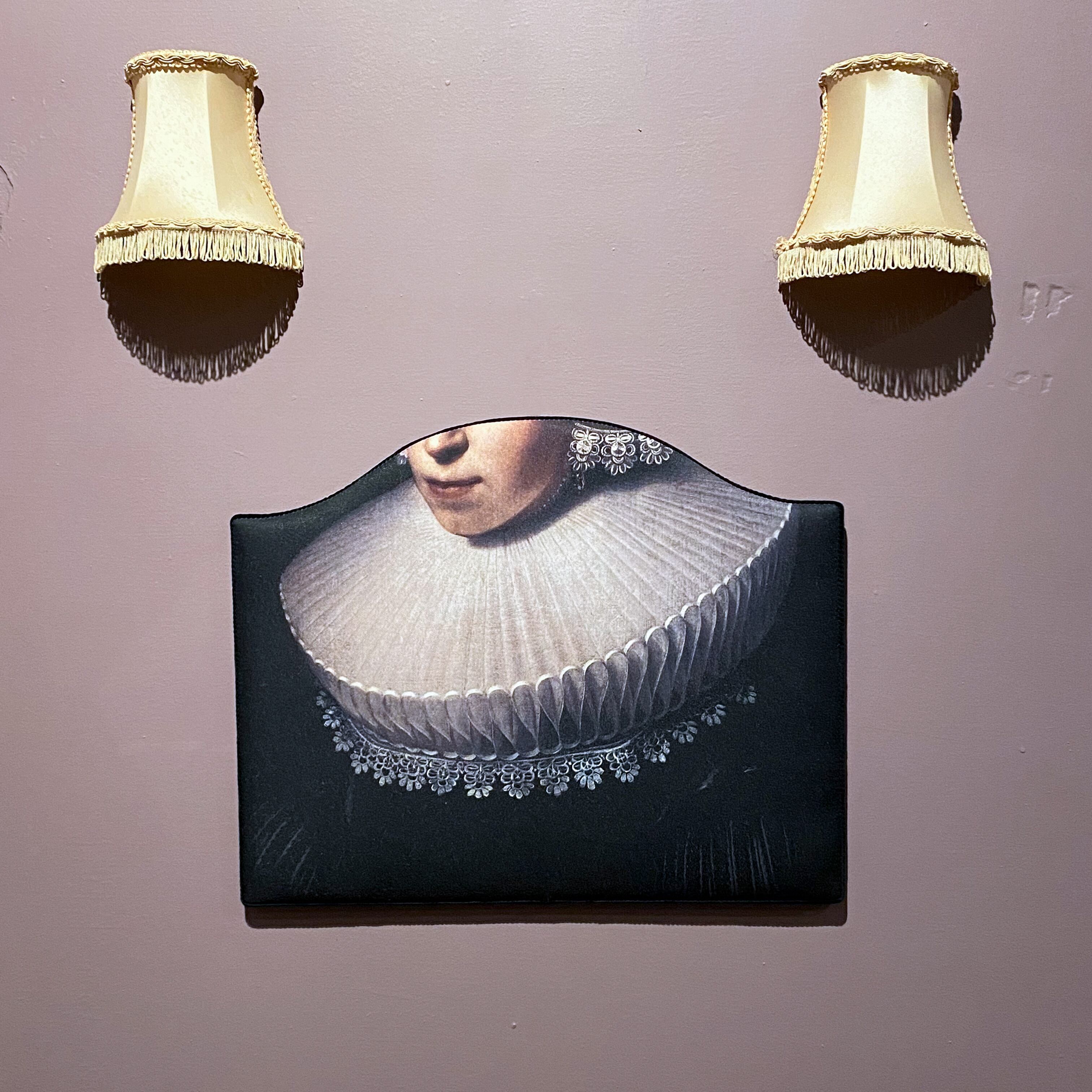 絵画の雰囲気を纏った、椅子の背もたれのような壁掛けオーナメント。