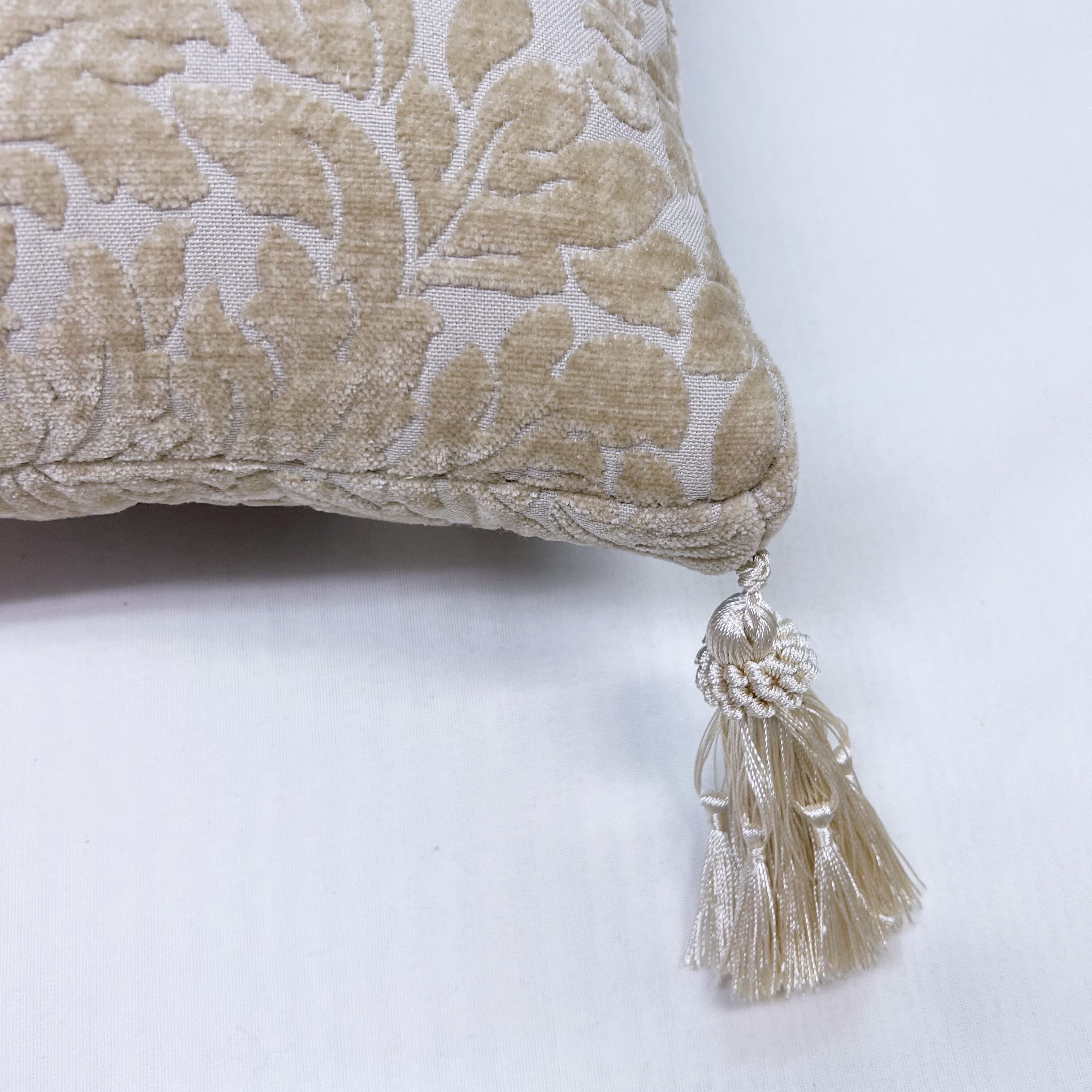 1800年代に撮影された彫像をプリントした生地に、タッセルを付けました。
