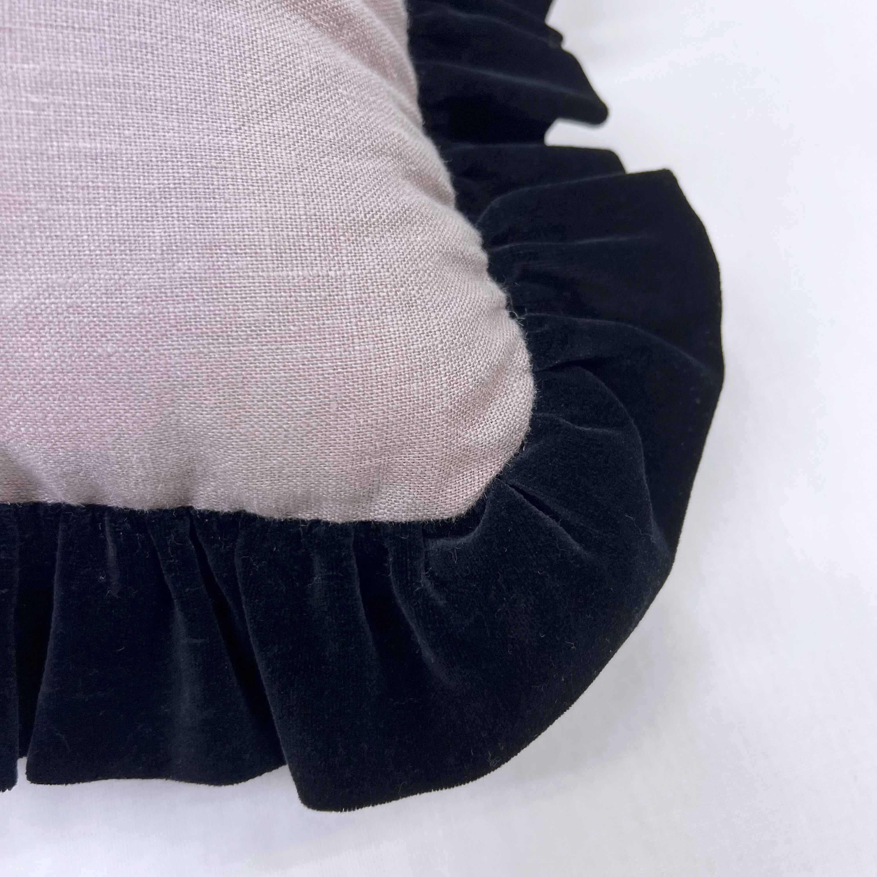 裏側にはグレージュ色のリネン生地を使用しています。