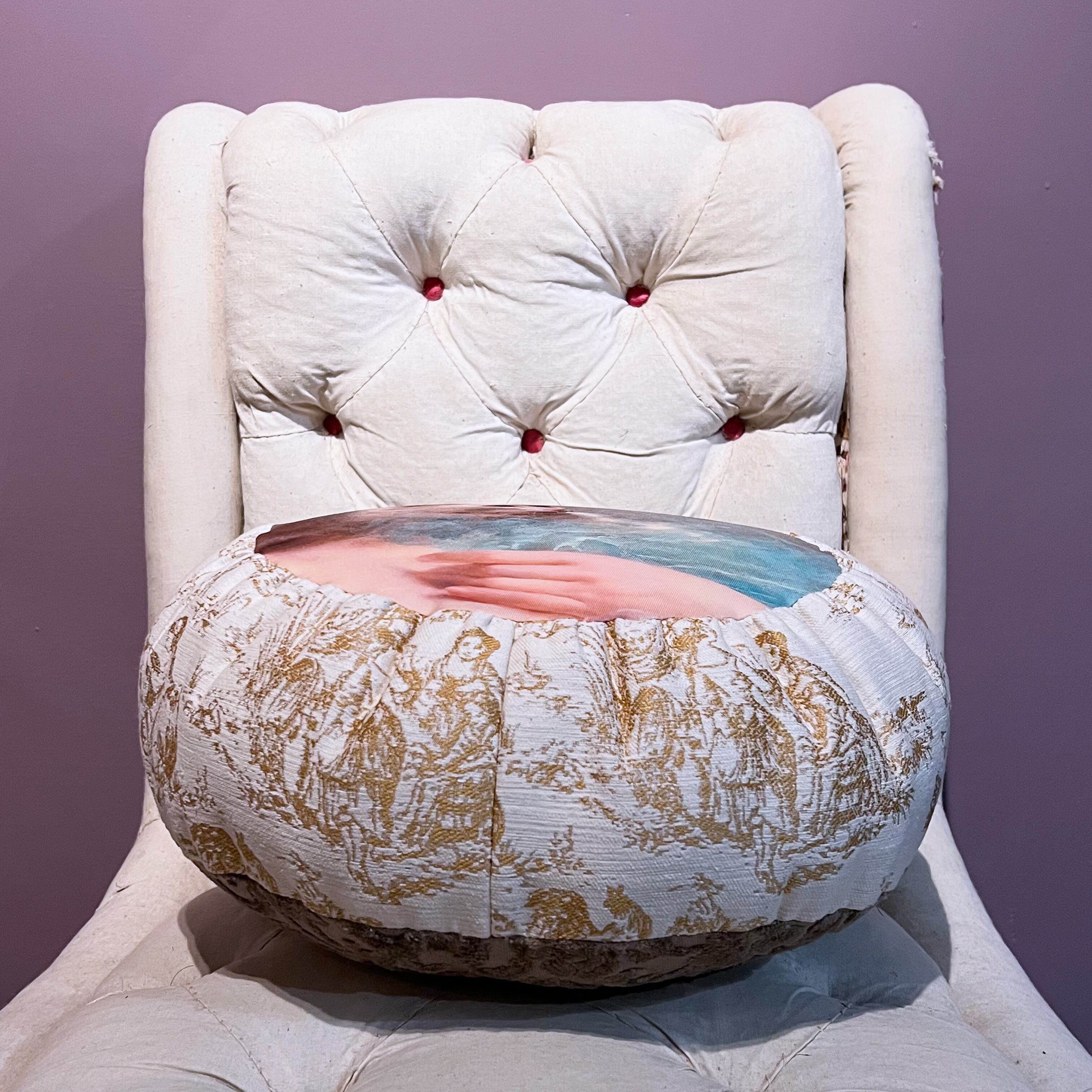 中世の絵画をプリントした生地に、フランスのトワルドジュイ生地を合わせました。