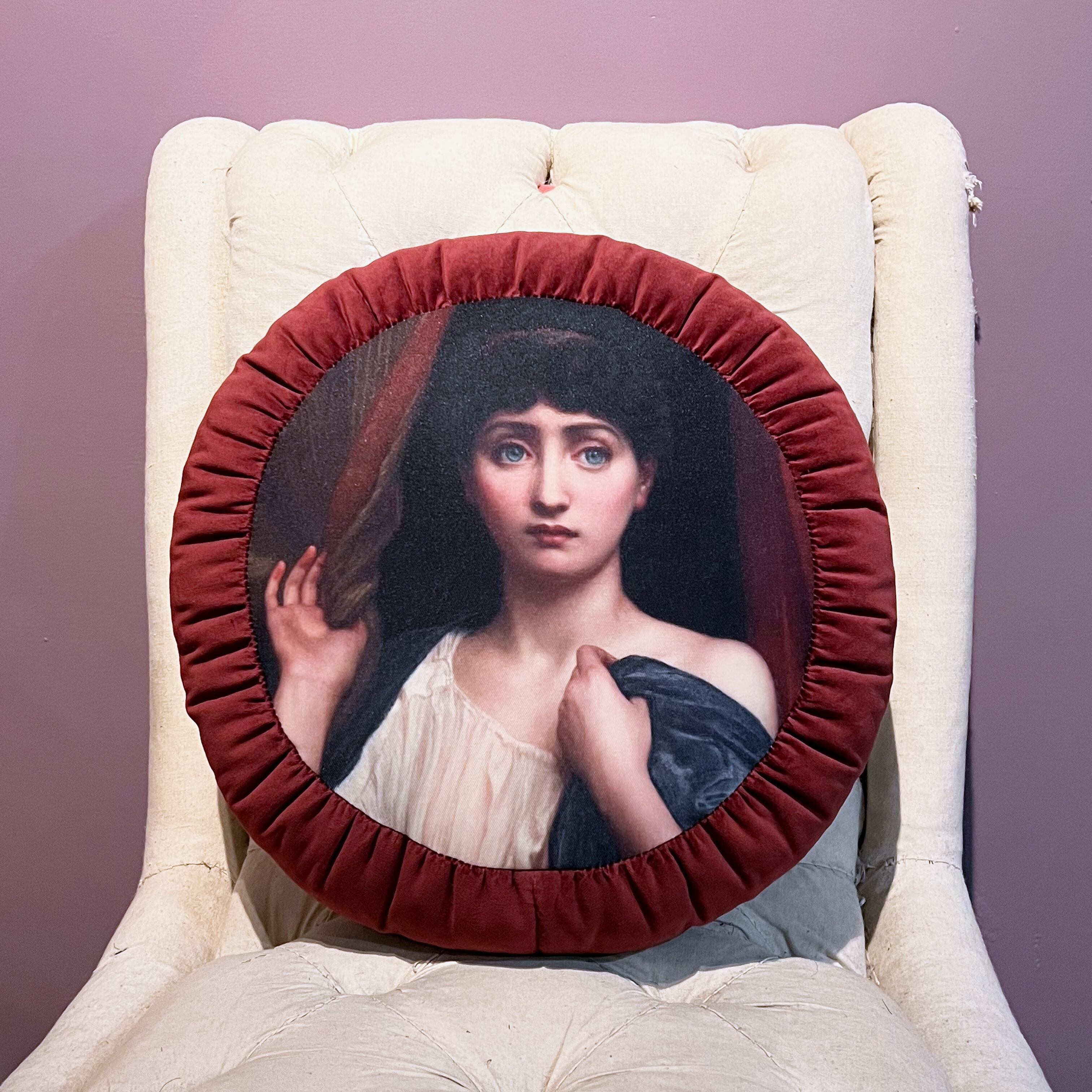 中世の絵画をプリントした生地に、コットンベロア生地を合わせました。