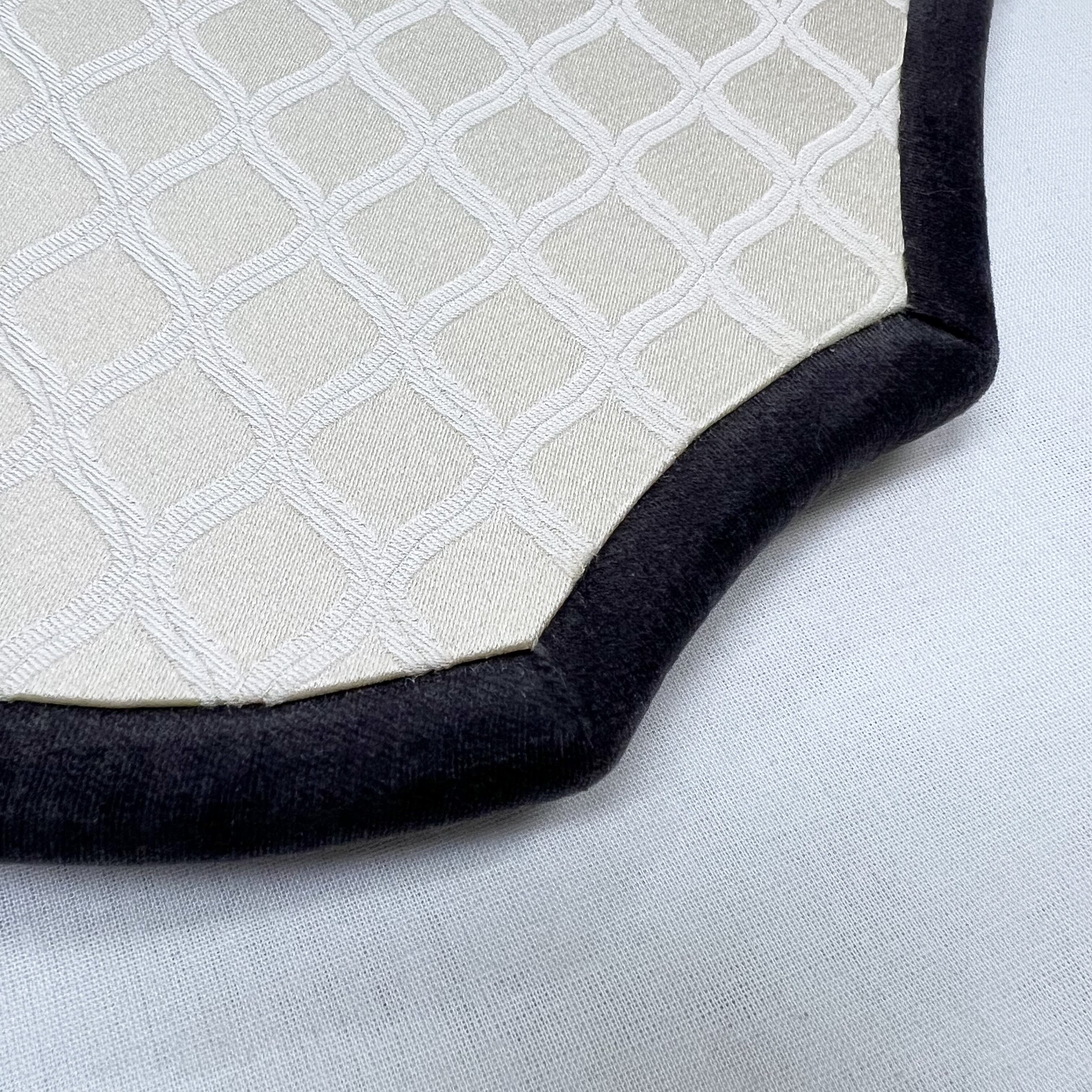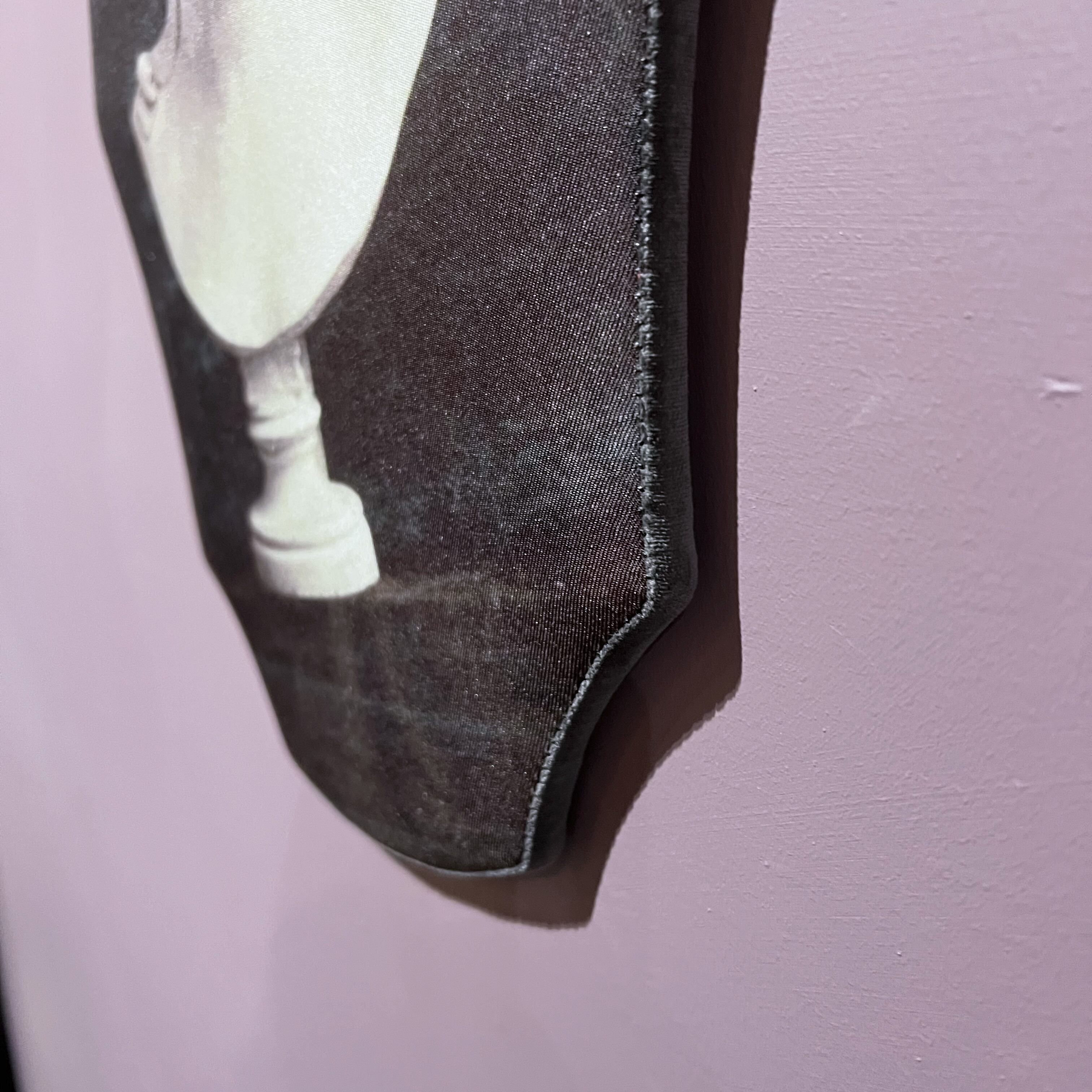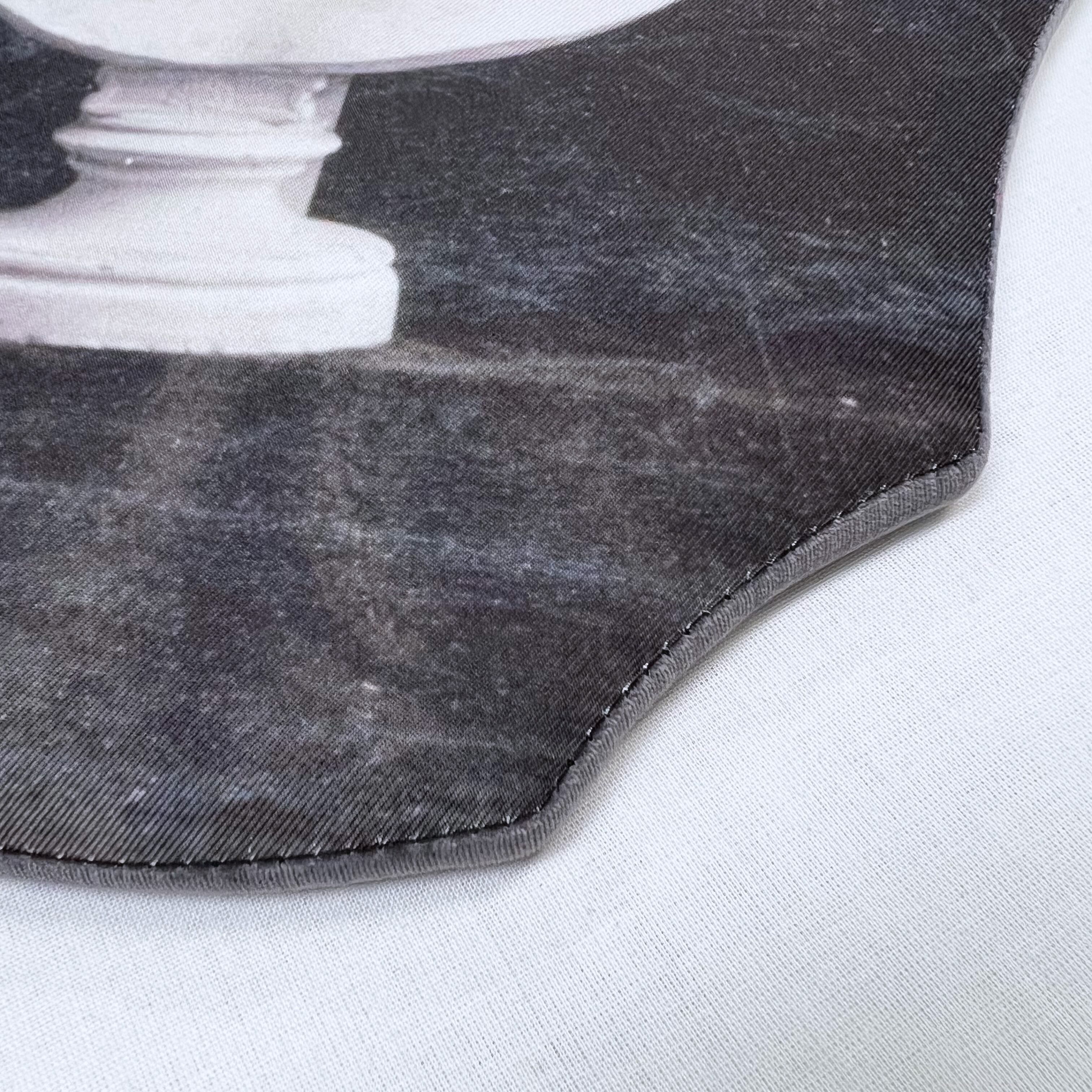 表は石膏像の古い写真をプリントした生地、縁はダークグレーのコットンベロア生地を使っています。