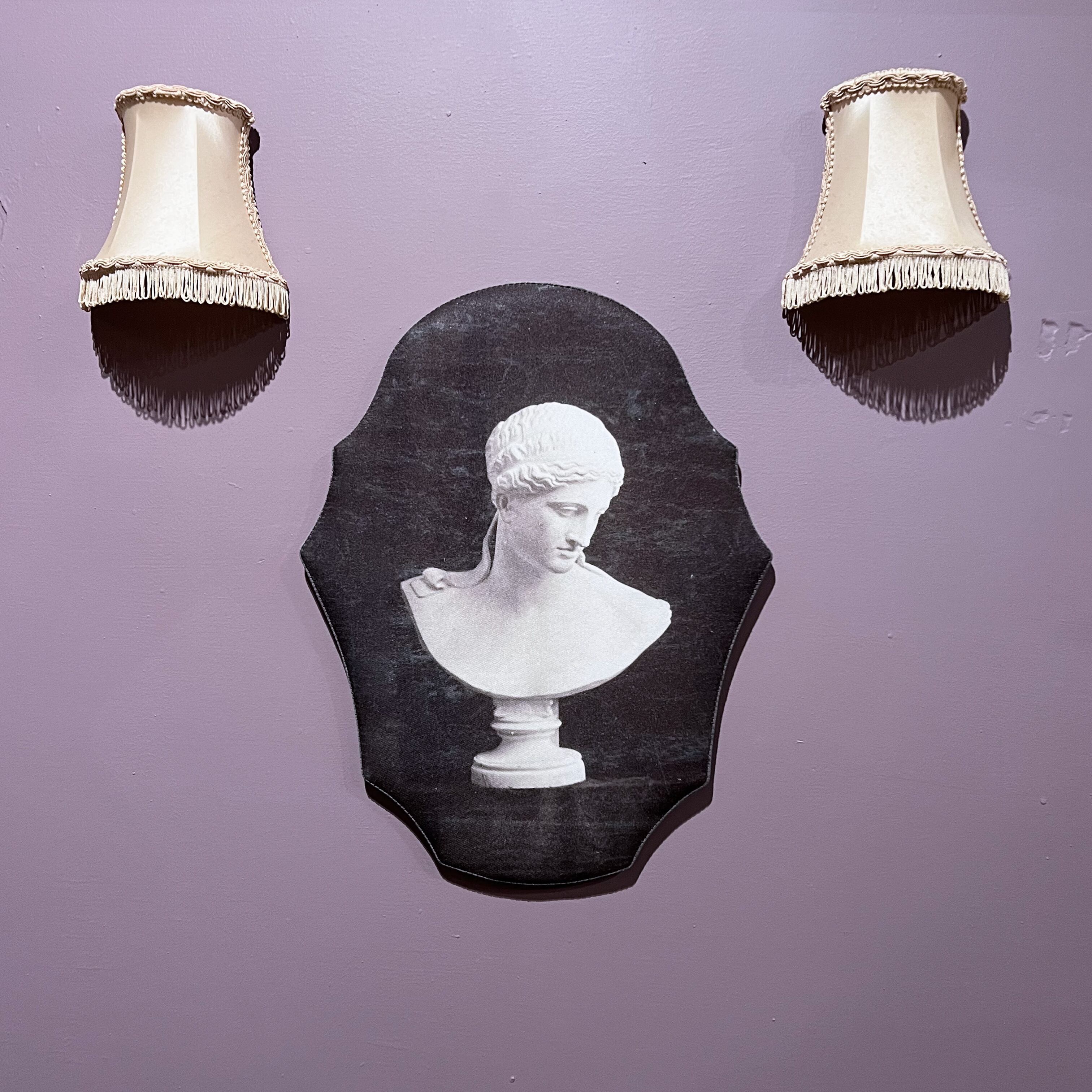 絵画の雰囲気を纏った、椅子の背もたれのような壁掛けオーナメント。