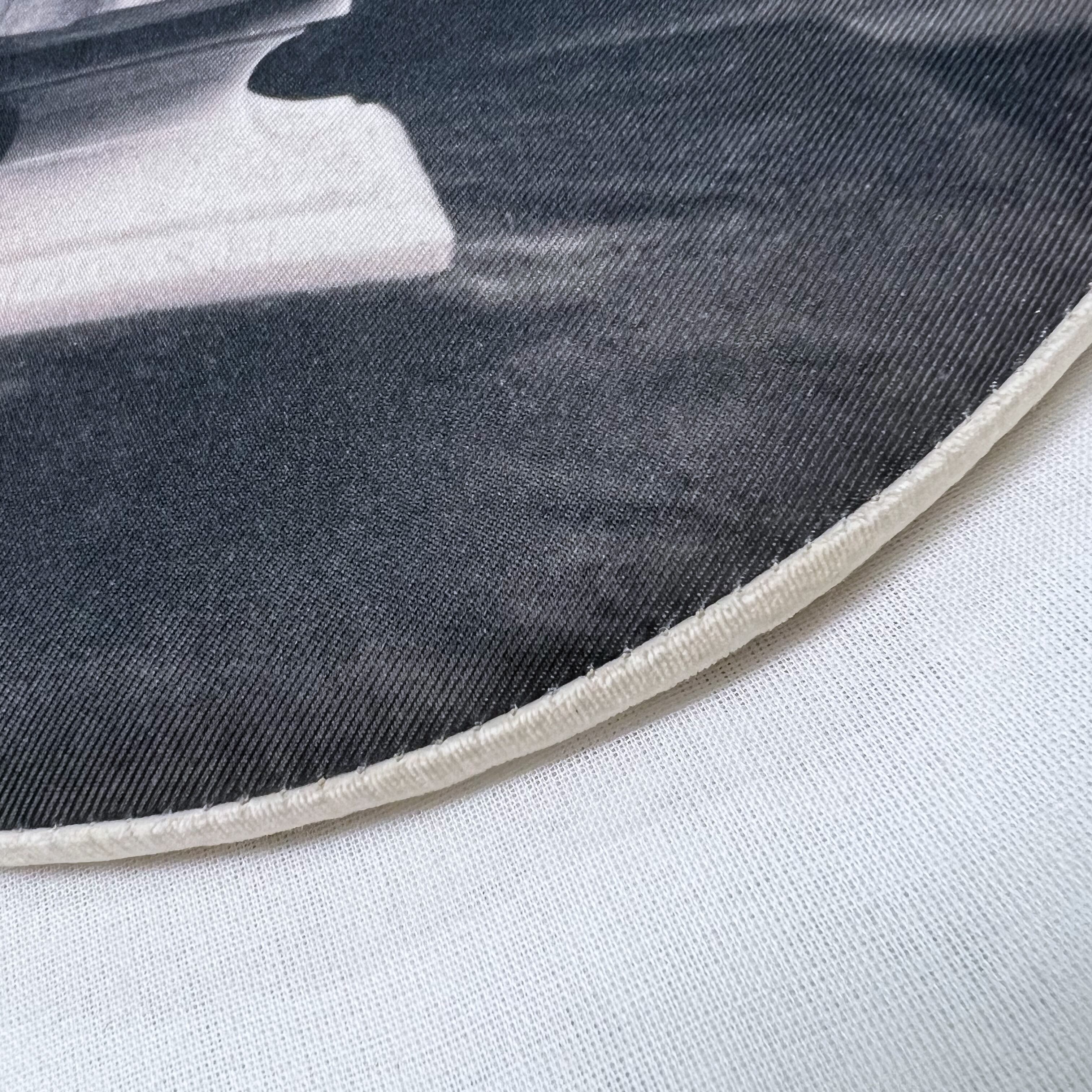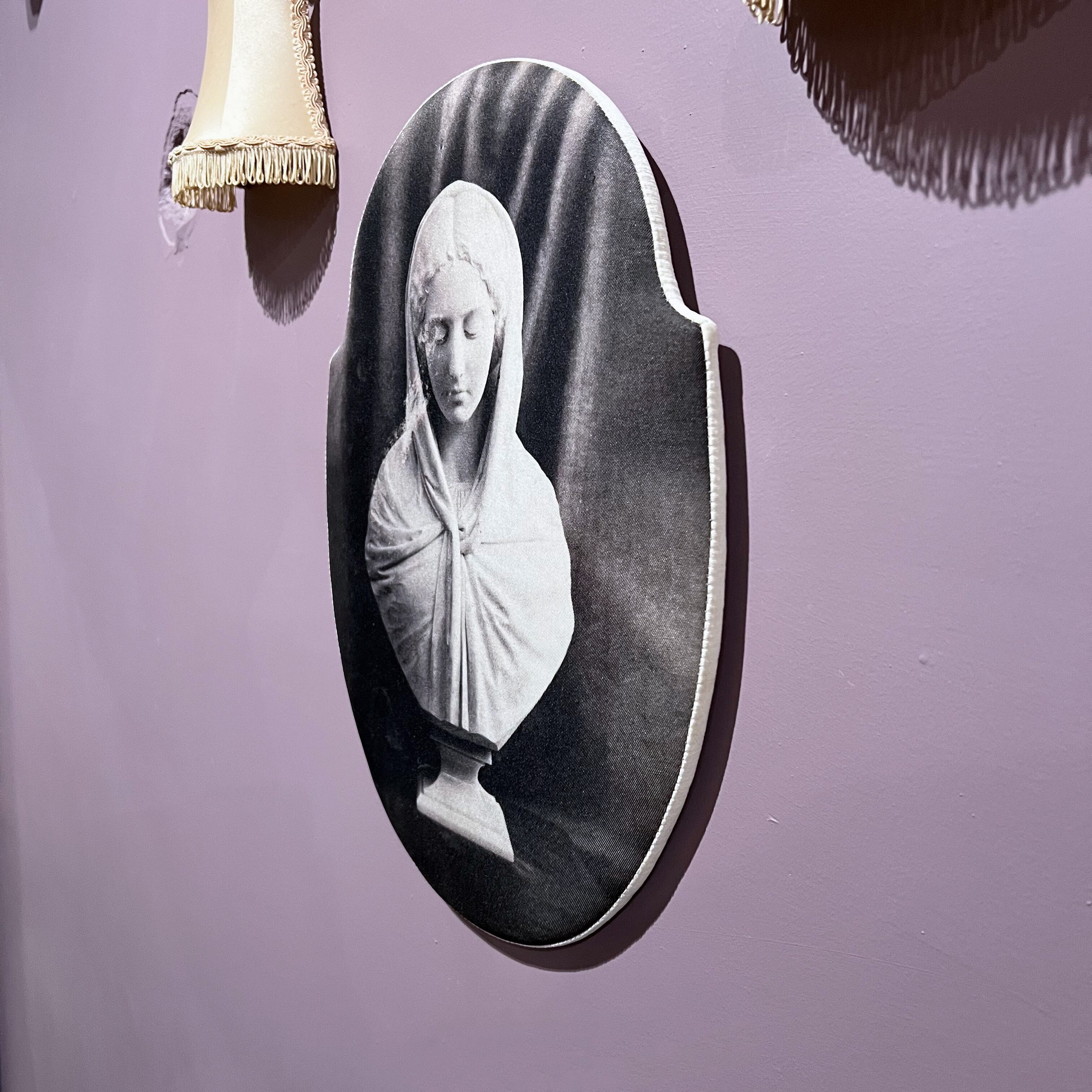 表は石膏像の古い写真をプリントした生地、縁はオフホワイトのコットンベロア生地を使っています。
