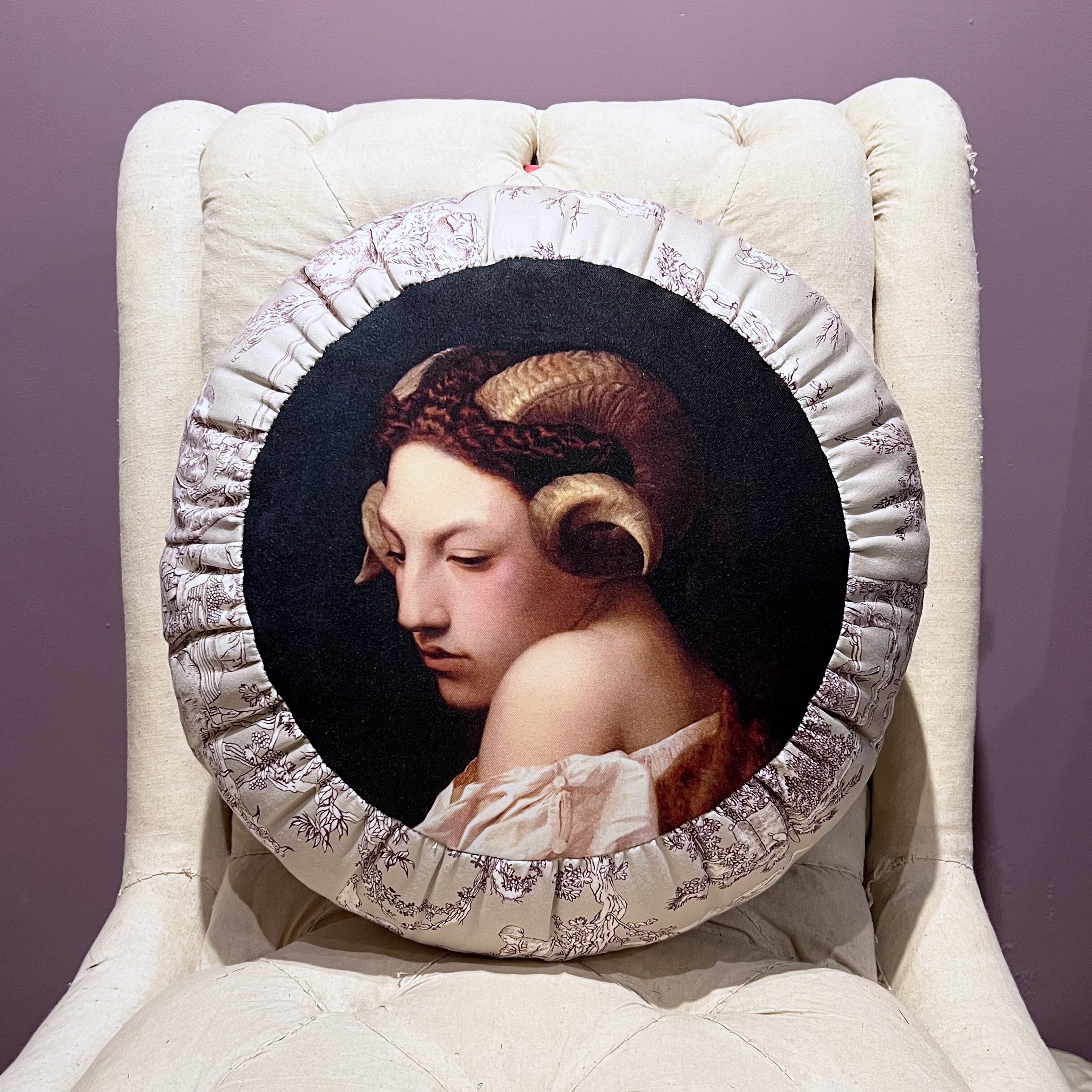中世の絵画をプリントした生地に、フランスのトワルドジュイ生地を合わせました。