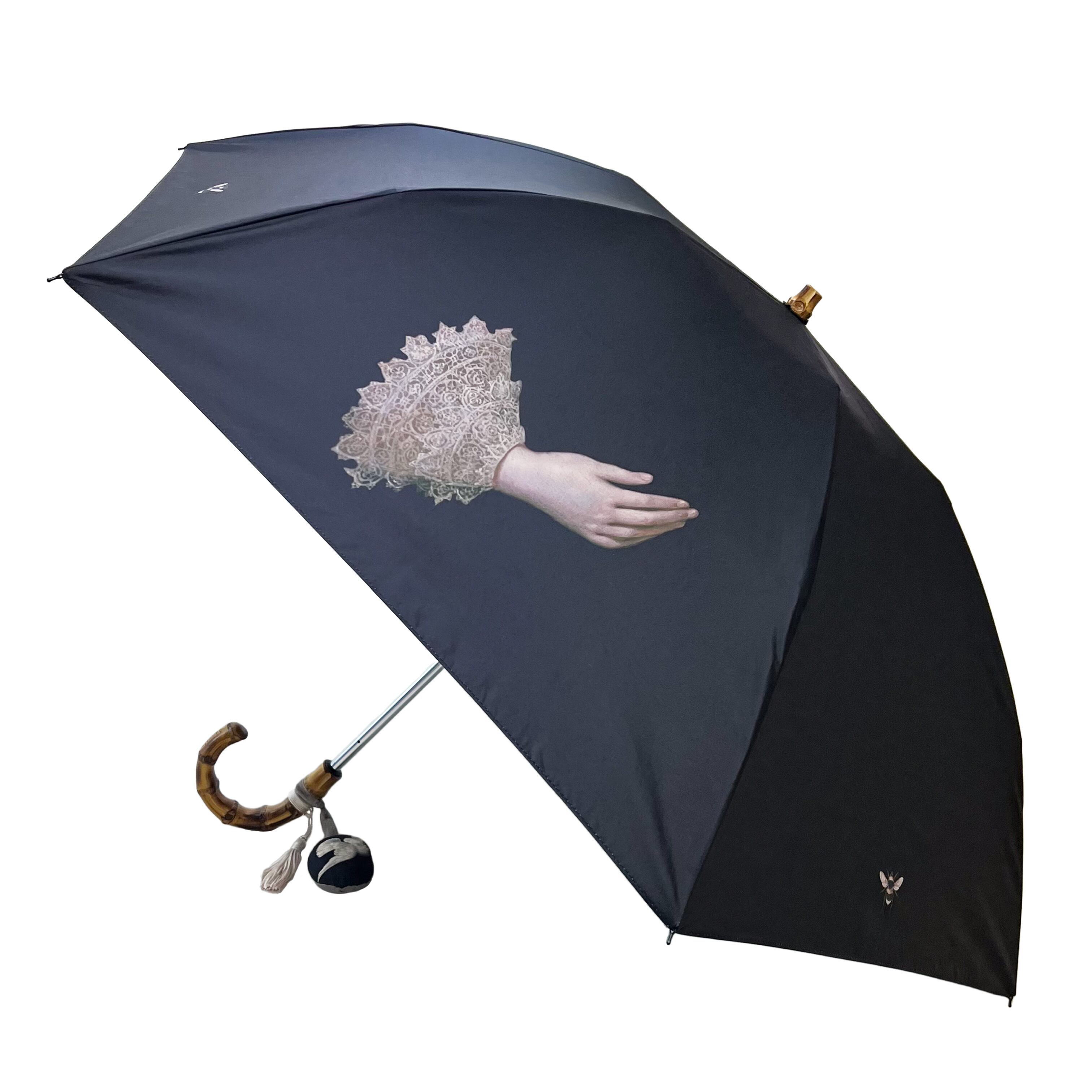 アンティークの世界観を持った折りたたみタイプの日傘。